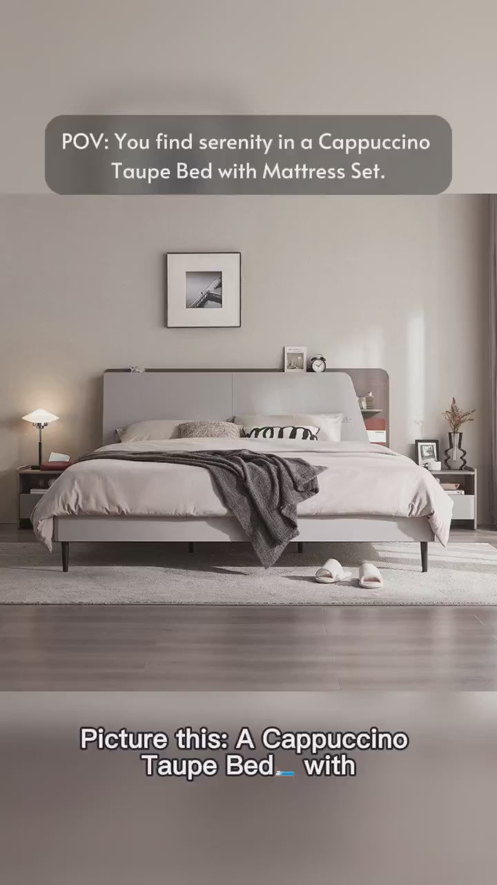 Cappuccino Taupe Bed with Mattress Set