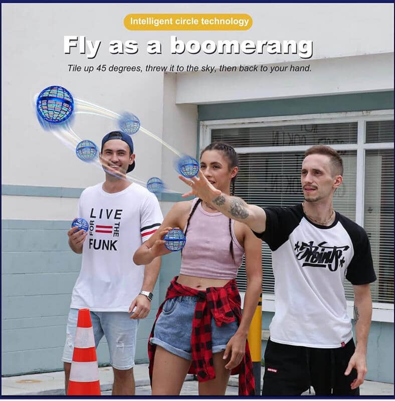 • Boomerang-funktion med auto-stopp, så den svävar tillbaka av sig själv.