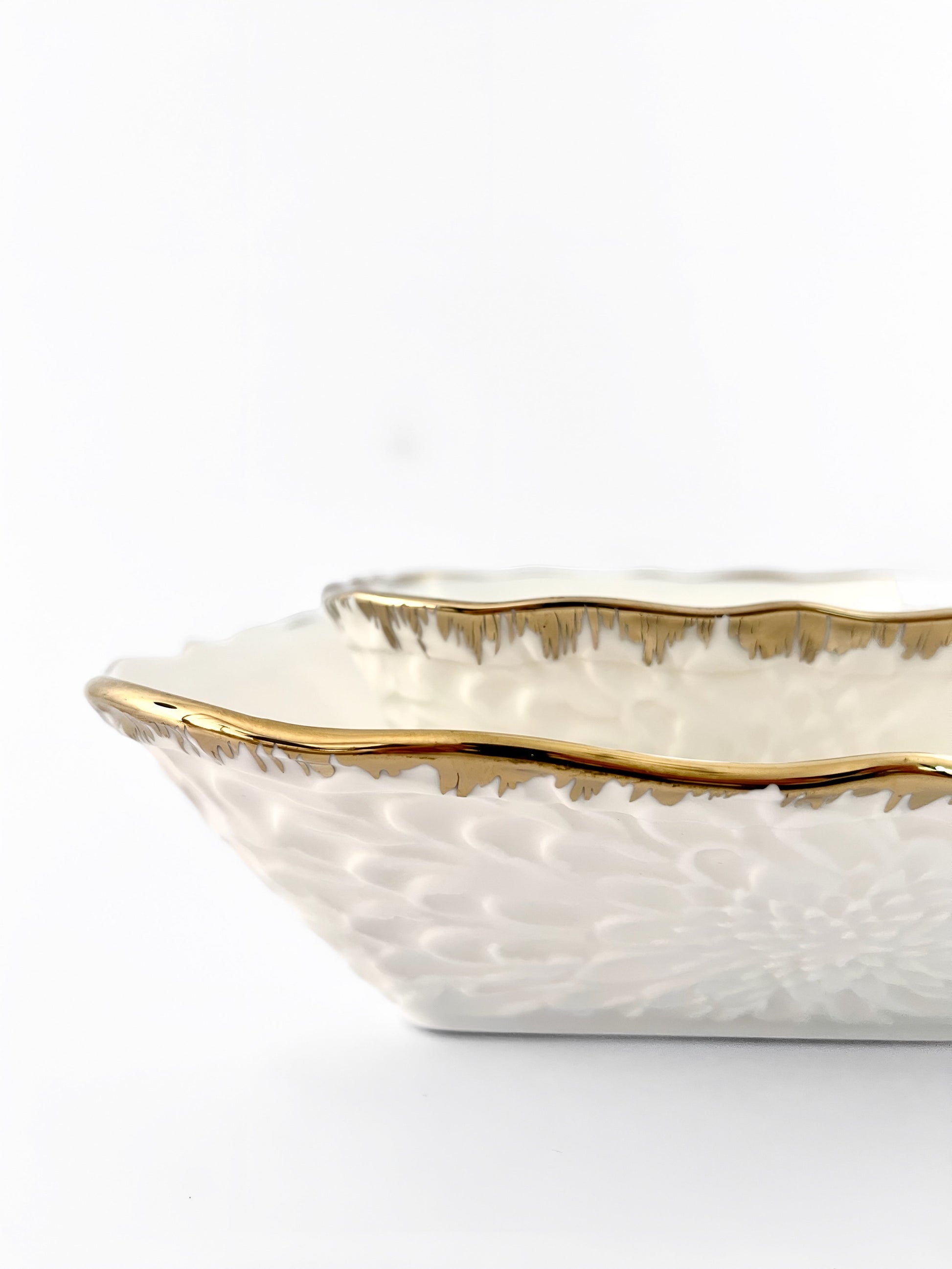 Upplev ren elegans med vår Liam Skål. Denna skål är en förtrollande kombo av klassisk vit och skimrande guld som omedelbart fångar ögat. Den är formad för att framhäva din servering och lyfta dina rätter till en exklusiv nivå. Med denna skål blir din kökskollektion fulländad.
