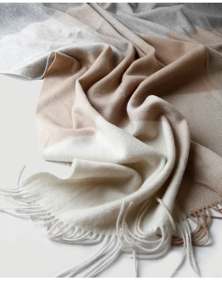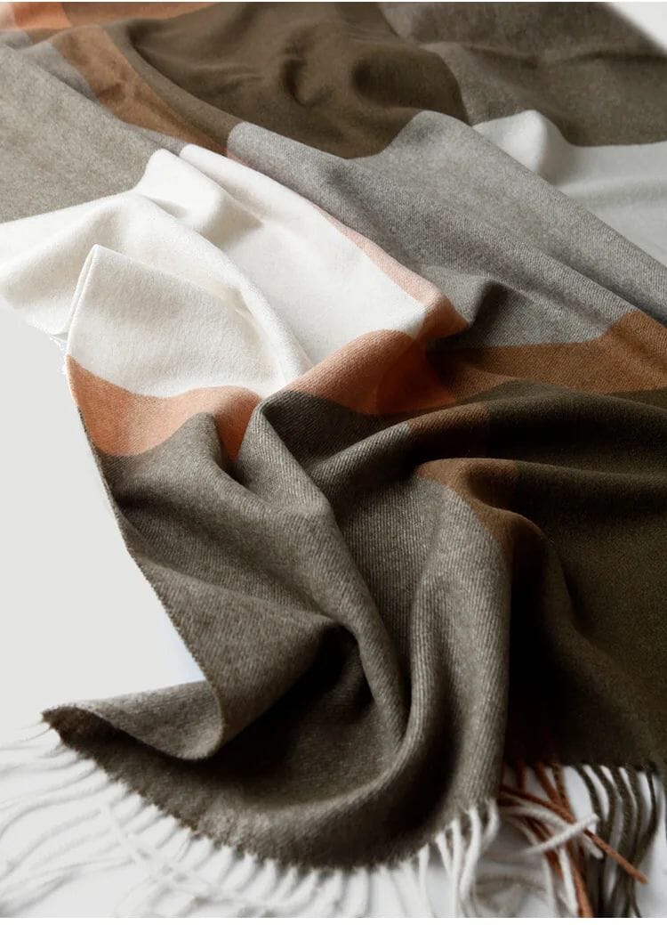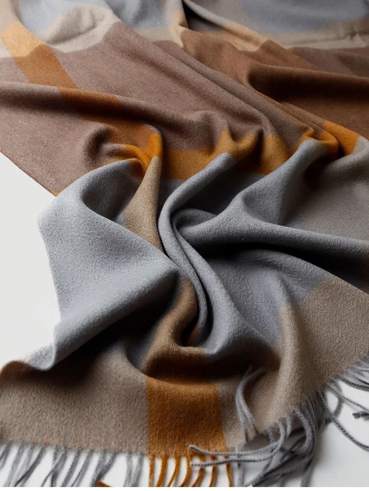 Upplev den lyxiga känslan av en äkta lammullsfilt, tillverkad av högkvalitativ ull från Inre Mongoliet. Med en vacker rutdesign och eleganta fransar, kombinerar denna filt stil, komfort och funktionalitet – perfekt för både hemmet och resor.